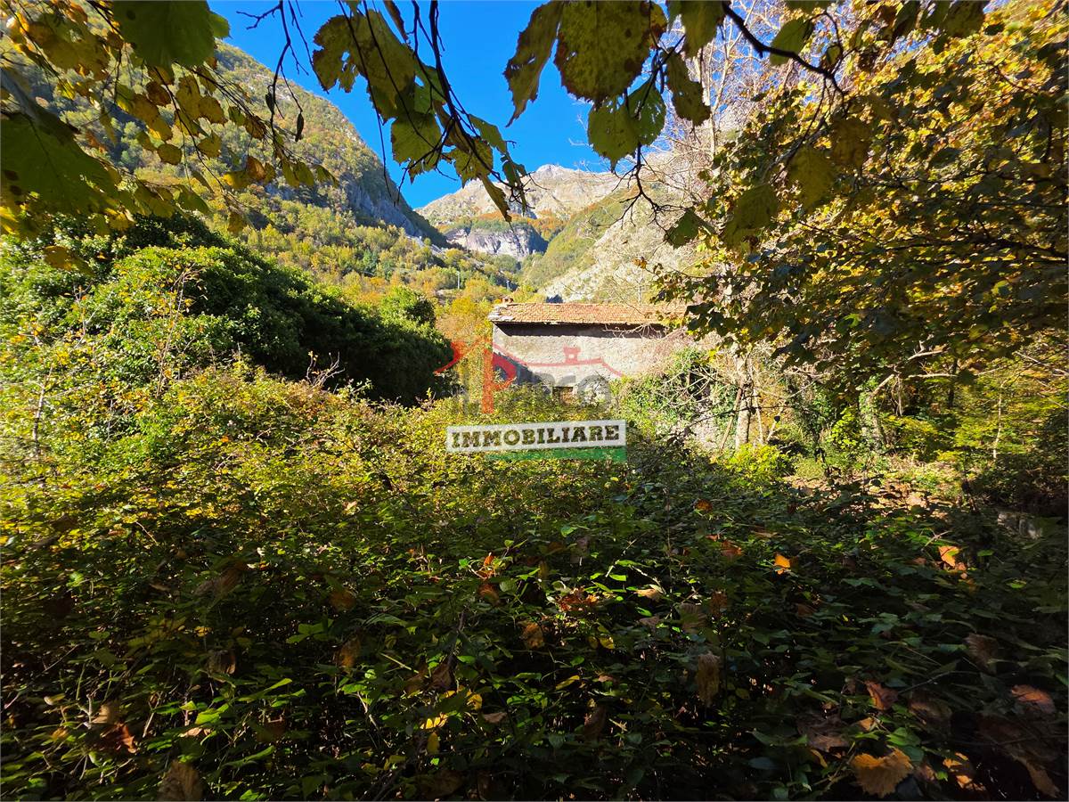 Antica casa in pietra con giardino nel verde della Garfagnana con bella vista sui montagne.